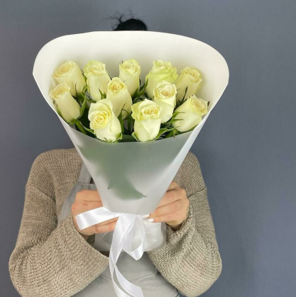 Купить букет из 11 белых кенийских роз в Шымкенте
