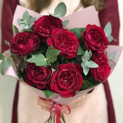 Букет из 7 роз "Уильям Шекспир" с зеленью