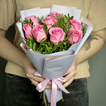 Купить букет из 9 розовых кенийских роз в Шымкенте
