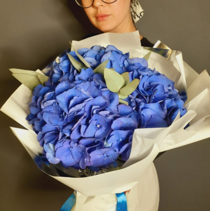 Три синие гортензии в упаковке | Delaflor в Шымкенте